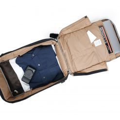 Kell 3-way Brief Pack can be used as a backpack, handheld bag, and shoulder bag. The thoughtfully designed compartments together with the 3-side opening zipper, Kell can be opened like luggage and let the users easily organize and access to their belongings such as laptops, notes, or stationaries. This sophisticated computer backpack can also be attached to the luggage with its luggage handle slot at back.