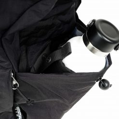 – External pocket fits bottle up to 750ml with drawstring closure.